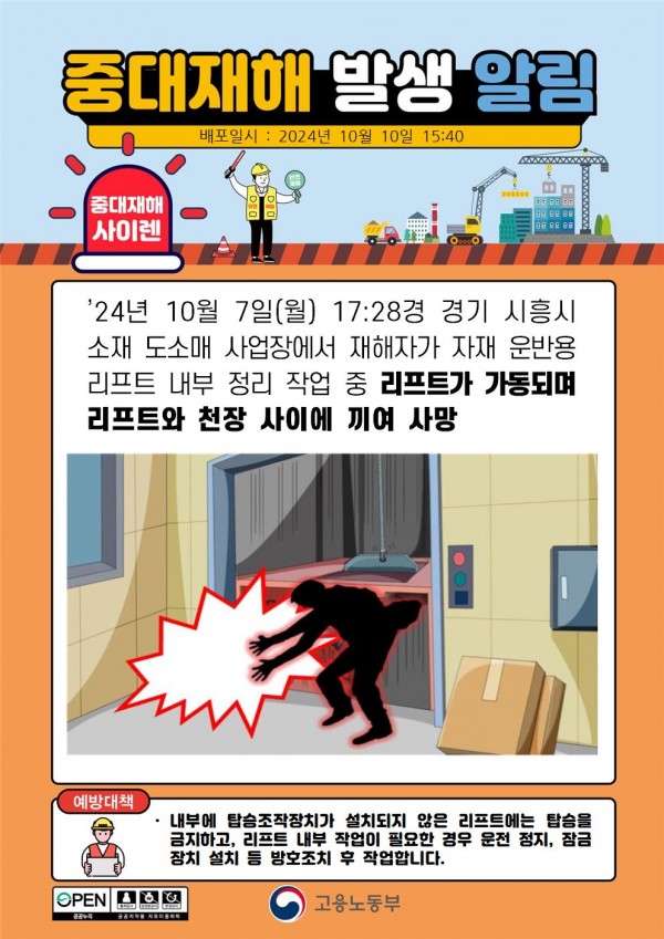 도소매 사업장에서 리프트와 천장 사이에 끼여 사망 페이지 정보 작성자 안전경영컨설팅 작성일24-11-11 08:45 조회2,666회 댓글0건 관련링크 이전글 다음글 목록 본문 . 댓글목록 등록된 댓글이 없습니다. 이전글 다음글 목록