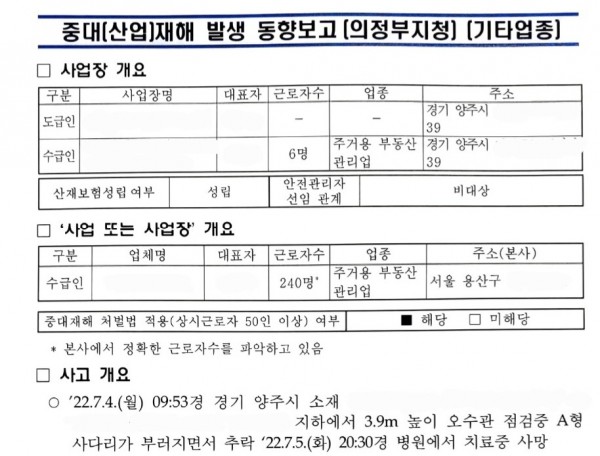 <중대재해>오수관 점검 중 A형 사다리 부러짐에 의한 추락 페이지 정보 작성자 안전경영컨설팅 작성일22-07-14 09:14 조회5,636회 댓글0건 관련링크 이전글 다음글 목록 본문 . 댓글목록 등록된 댓글이 없습니다. 이전글 다음글 목록