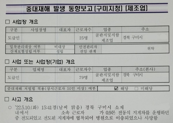 <중대재해> 전동지게차 운행 중 지게차 전도로 인한 깔림 페이지 정보 작성자 안전경영컨설팅 작성일22-06-07 10:26 조회5,497회 댓글0건 관련링크 이전글 다음글 목록 본문 . 댓글목록 등록된 댓글이 없습니다. 이전글 다음글 목록