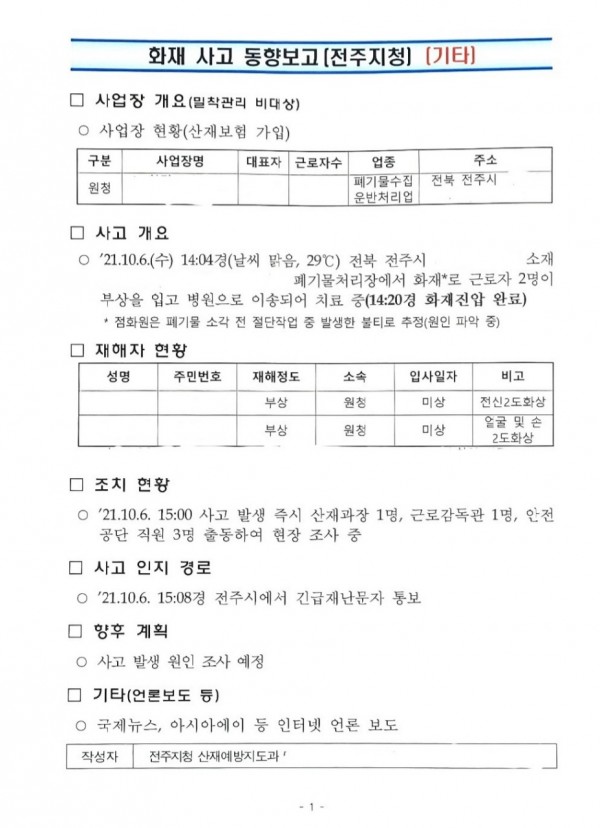 <중대재해> 폐기물처리장 화재사고