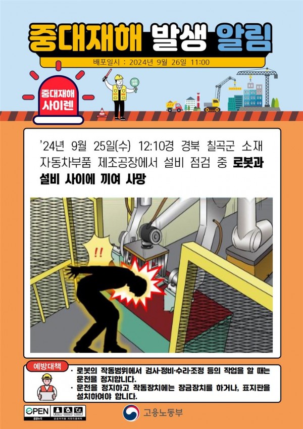 자동차부품 제조업 로봇과 설비 사이에 끼여 사망 페이지 정보 작성자 안전경영컨설팅 작성일24-11-11 08:46 조회3,069회 댓글0건 관련링크 이전글 다음글 목록 본문 . 댓글목록 등록된 댓글이 없습니다. 이전글 다음글 목록